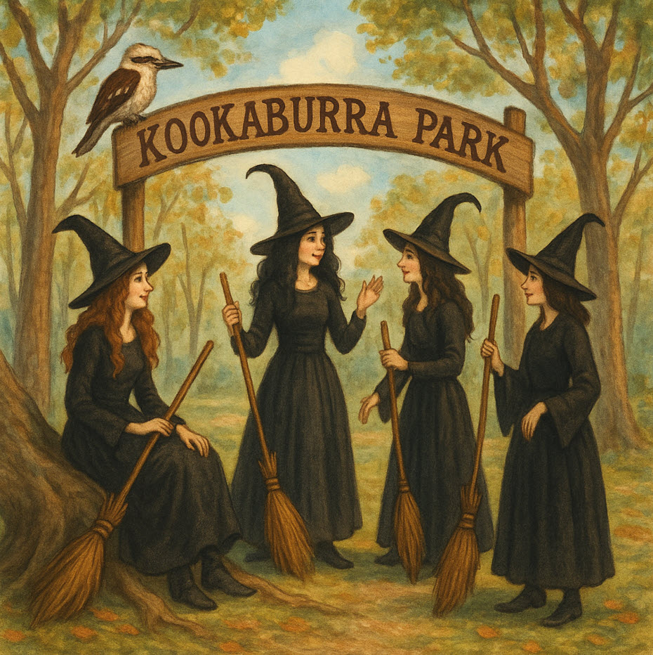 After profusely apologising and returning a fairy bread platter they’d accidentally teleported into, the witches trudged back to their usual meeting spot, where the kookaburras cackled so loudly it echoed across the suburb.